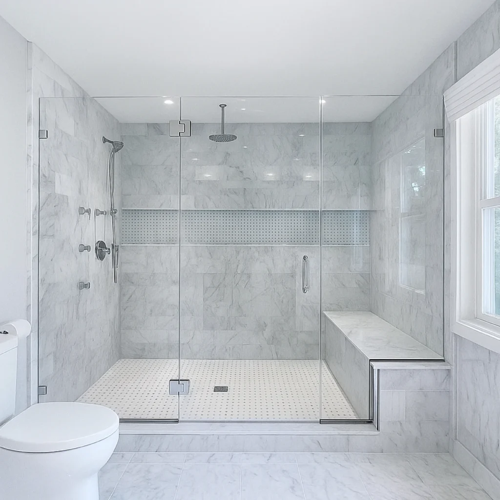 With a local team and a nearby showroom, Bellevue homeowners can easily explore, design, and install frameless shower doors, stationary glass panels, and custom enclosures.